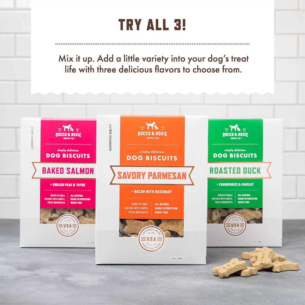 For our three biscuit varieties, we focused on fresh, flavorful tastes dogs love. Succulent salmon, delicious duck, savory cheese…real food (never fake flavoring) and at least 2-3 times more of it than other biscuit brands.