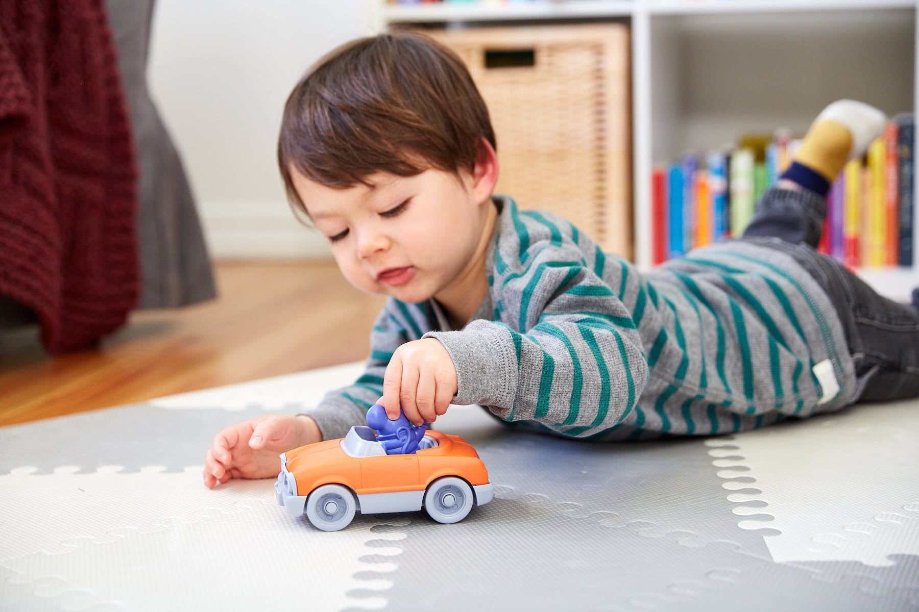 Hit the road for quick spin or leisurely drive in the Green Toys™ Convertible! Made in the USA from 100% recycled plastic, this car comes with 1 House Mouse character ready for imaginative play. The pint-sized design is both durable and lightweight, just right for little hands, and can easily be tossed in a diaper bag for on-the-go fun. Built to last with no metal axles, this car is made safe for children and the earth they play on.