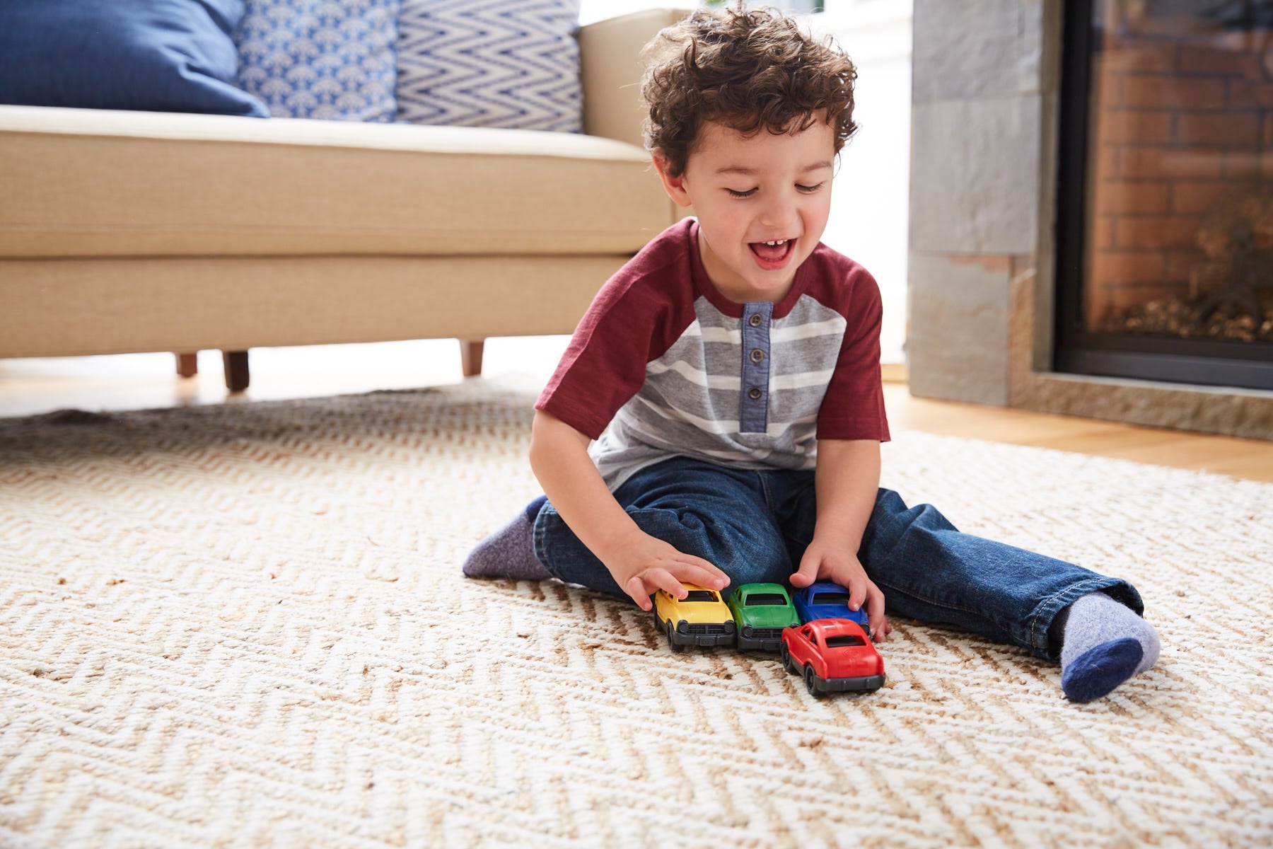 The Deluxe Ferry Boat Set is our biggest and best yet! Set sail with the Ferry Boat for a quick bathtub excursion or an extended trans-pool voyage. Whatever the adventure, this two-story vessel is ready to hit the open water with room for eco-friendly cargo galore, and even comes with FOUR Green Toys Mini Cars -- double the traditional set! Use the slide-out ramp to load up the spacious bottom level that easily accommodates all four cars. The open top deck features two small benches on each side, as well as eleven windows looking down into the main level. Made in the USA from 100% recycled plastic, this craft is ideal for any body of water - durable, buoyant, and dishwasher safe. The hull also detaches for easy cleaning.